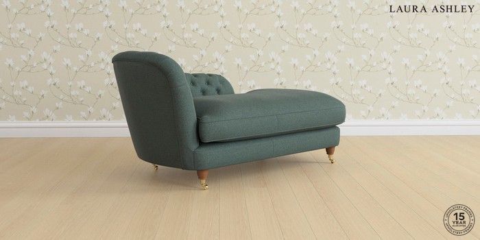 7.0.3 Buy Hathersage by Laura Ashley Chaise Longue Left Hand Wooton Forest Green Low Brass Castor - Teak from the Next UK online shop Click here to use our accessible website