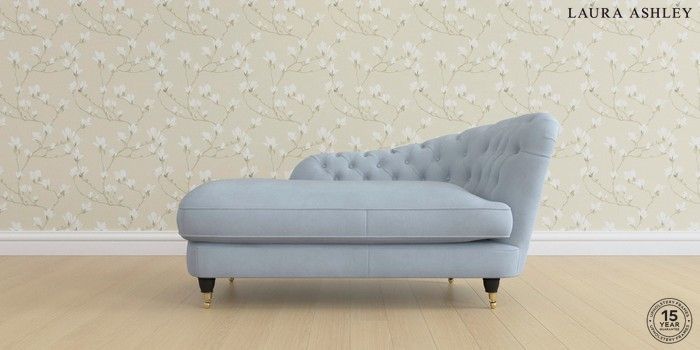 7.0.3 Buy Hathersage by Laura Ashley Chaise Longue Right Hand Ailsworth Newport Blue Low Brass Castor - Black from the Next UK online shop Click here to use our accessible website