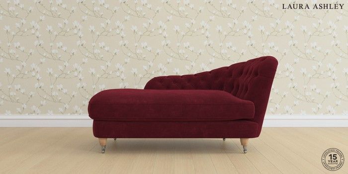 7.0.3 Buy Hathersage by Laura Ashley Chaise Longue Right Hand Alwyn Velvet Burgundy Red Low Chrome Castor - Light Oak from the Next UK online shop Click here to use our accessible website