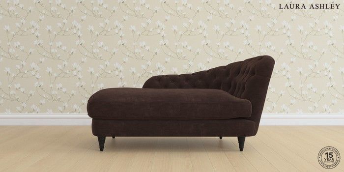 7.0.3 Buy Hathersage by Laura Ashley Chaise Longue Right Hand Alwyn Velvet Chocolate Brown Low Turned - Black from the Next UK online shop Click here to use our accessible website