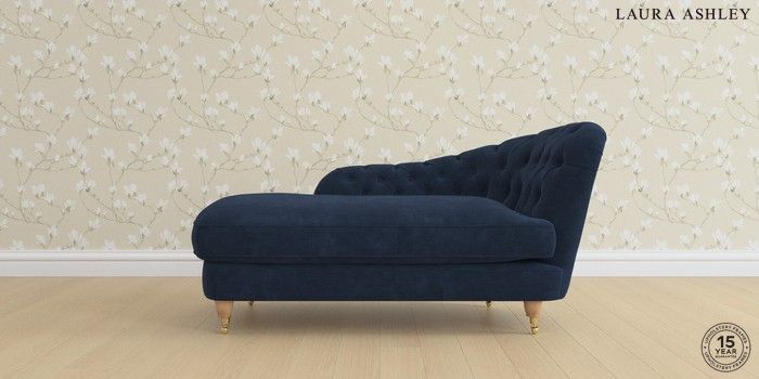 7.0.3 Buy Hathersage by Laura Ashley Chaise Longue Right Hand Alwyn Velvet Midnight Navy Low Brass Castor - Light Oak from the Next UK online shop Click here to use our accessible website