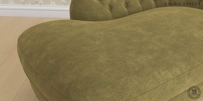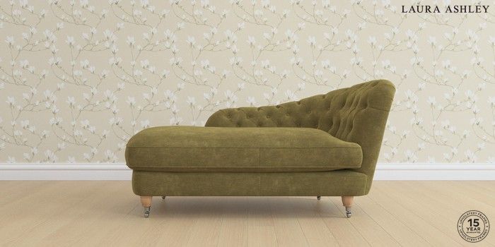 7.2.4 Buy Hathersage by Laura Ashley Chaise Longue Right Hand Alwyn Velvet Olive Green Low Chrome Castor - Light Oak from the Next UK online shop Click here to use our accessible website