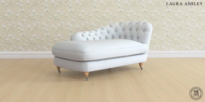 7.0.3 Buy Hathersage by Laura Ashley Chaise Longue Right Hand Anneliese Seaspray Blue Low Brass Castor - Light Oak from the Next UK online shop Click here to use our accessible website