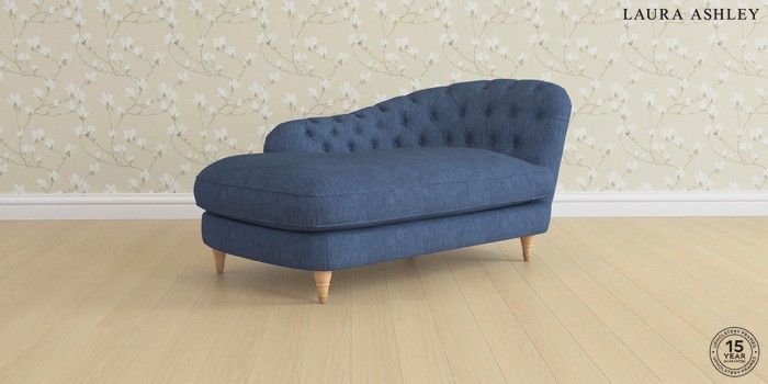 7.0.3 Buy Hathersage by Laura Ashley Chaise Longue Right Hand Bainton Midnight Navy Low Turned - Light Oak from the Next UK online shop Click here to use our accessible website