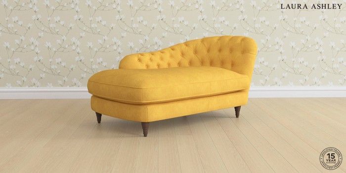 7.0.3 Buy Hathersage by Laura Ashley Chaise Longue Right Hand Bainton Ochre Yellow Low Turned - Chestnut from the Next UK online shop Click here to use our accessible website