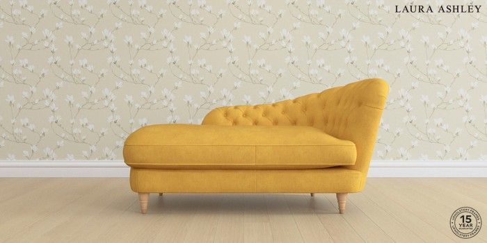 7.0.3 Buy Hathersage by Laura Ashley Chaise Longue Right Hand Bainton Ochre Yellow Low Turned - Light Oak from the Next UK online shop Click here to use our accessible website