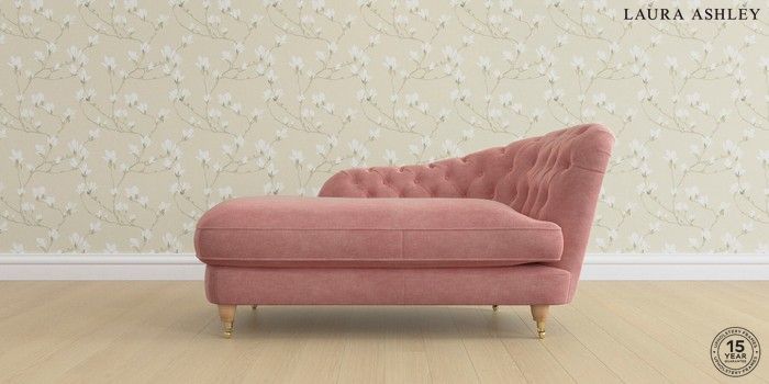 7.0.3 Buy Hathersage by Laura Ashley Chaise Longue Right Hand Bainton Old Rose Pink Low Brass Castor - Light Oak from the Next UK online shop Click here to use our accessible website