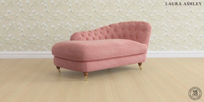 7.0.3 Buy Hathersage by Laura Ashley Chaise Longue Right Hand Bainton Old Rose Pink Low Brass Castor - Teak from the Next UK online shop Click here to use our accessible website