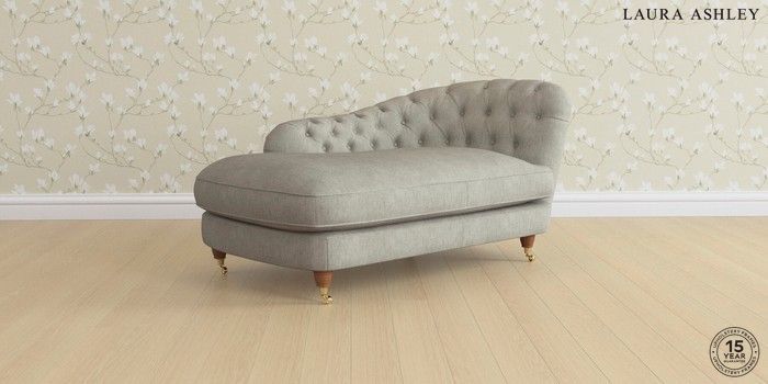 7.0.3 Buy Hathersage by Laura Ashley Chaise Longue Right Hand Bainton Pale Steel Grey Low Brass Castor - Teak from the Next UK online shop Click here to use our accessible website