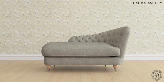 7.0.3 Buy Hathersage by Laura Ashley Chaise Longue Right Hand Bainton Pale Steel Grey Low Chrome Castor - Light Oak from the Next UK online shop Click here to use our accessible website