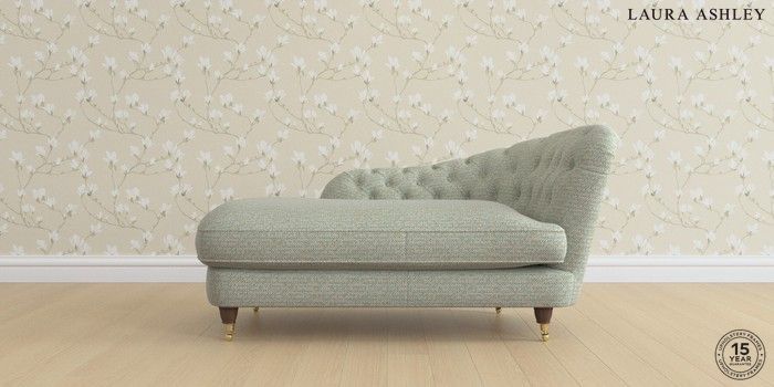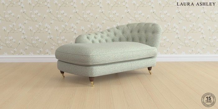 7.0.3 Buy Hathersage by Laura Ashley Chaise Longue Right Hand Borwick Newport Blue Low Brass Castor - Chestnut from the Next UK online shop Click here to use our accessible website
