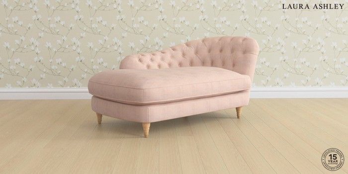 7.0.3 Buy Hathersage by Laura Ashley Chaise Longue Right Hand Edwin Chenille Blush Pink Low Turned - Light Oak from the Next UK online shop Click here to use our accessible website