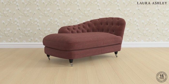 7.0.3 Buy Hathersage by Laura Ashley Chaise Longue Right Hand Edwin Chenille Burgundy Red Low Chrome Castor - Black from the Next UK online shop Click here to use our accessible website