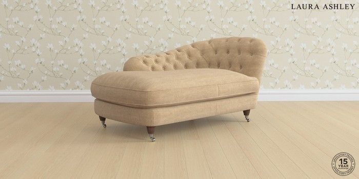 7.0.3 Buy Hathersage by Laura Ashley Chaise Longue Right Hand Edwin Chenille Gold Natural Low Chrome Castor - Chestnut from the Next UK online shop Click here to use our accessible website
