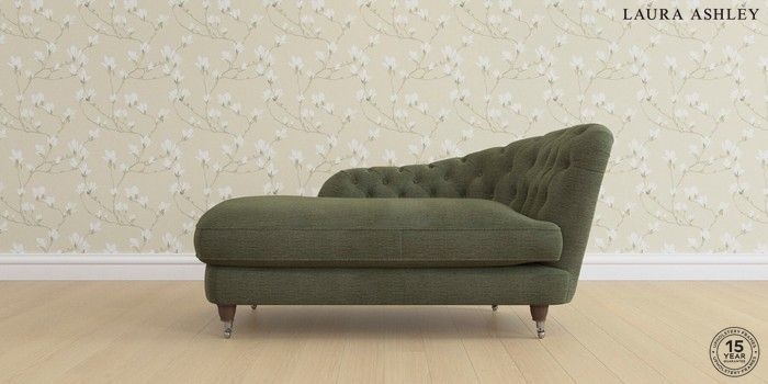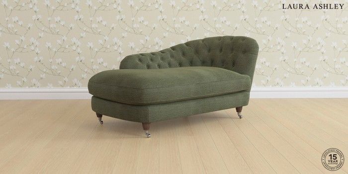 7.0.3 Buy Hathersage by Laura Ashley Chaise Longue Right Hand Edwin Chenille Hedgerow Green Low Chrome Castor - Chestnut from the Next UK online shop Click here to use our accessible website
