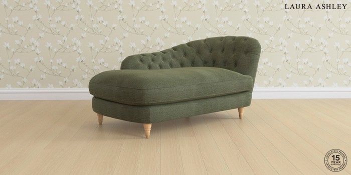 7.0.3 Buy Hathersage by Laura Ashley Chaise Longue Right Hand Edwin Chenille Hedgerow Green Low Turned - Light Oak from the Next UK online shop Click here to use our accessible website
