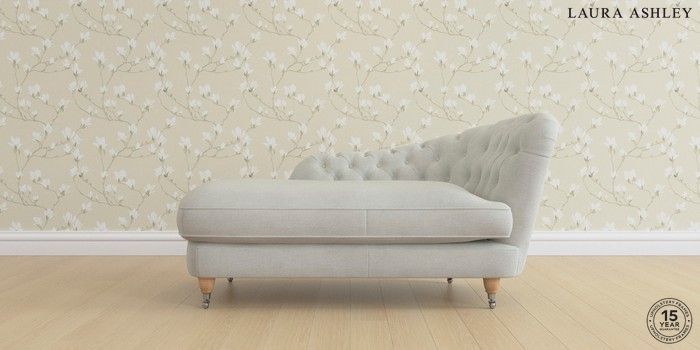 7.0.3 Buy Hathersage by Laura Ashley Chaise Longue Right Hand Edwin Chenille Silver Grey Low Brass Castor - Light Oak from the Next UK online shop Click here to use our accessible website