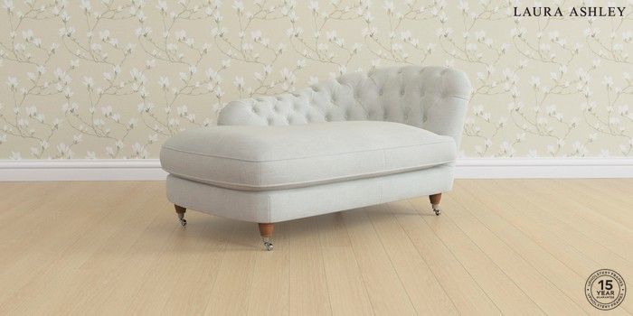 7.0.3 Buy Hathersage by Laura Ashley Chaise Longue Right Hand Edwin Chenille Silver Grey Low Chrome Castor - Light Oak from the Next UK online shop Click here to use our accessible website
