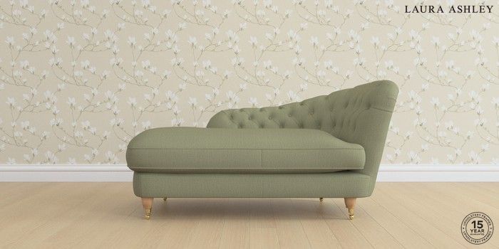 7.0.3 Buy Hathersage by Laura Ashley Chaise Longue Right Hand Edwin Herringbone Hedgerow Green Low Brass Castor - Light Oak from the Next UK online shop Click here to use our accessible website