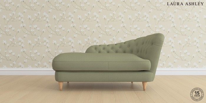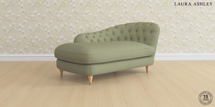 7.0.3 Buy Hathersage by Laura Ashley Chaise Longue Right Hand Edwin Herringbone Hedgerow Green Low Turned - Light Oak from the Next UK online shop Click here to use our accessible website