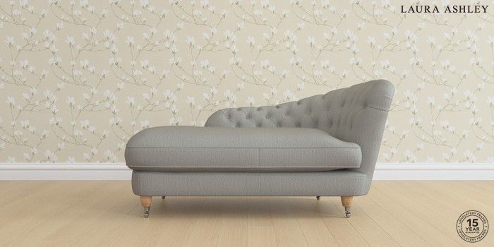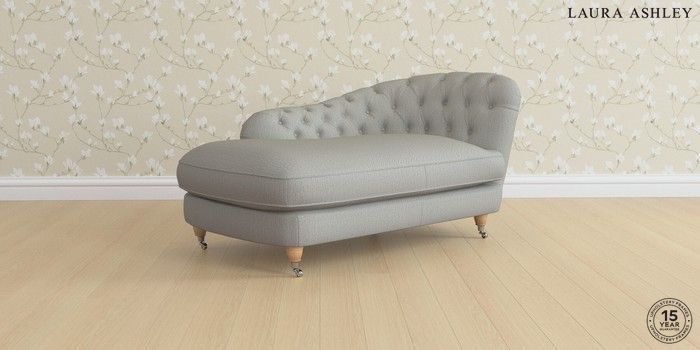 7.0.3 Buy Hathersage by Laura Ashley Chaise Longue Right Hand Edwin Herringbone Pale Steel Grey Low Chrome Castor - Light Oak from the Next UK online shop Click here to use our accessible website