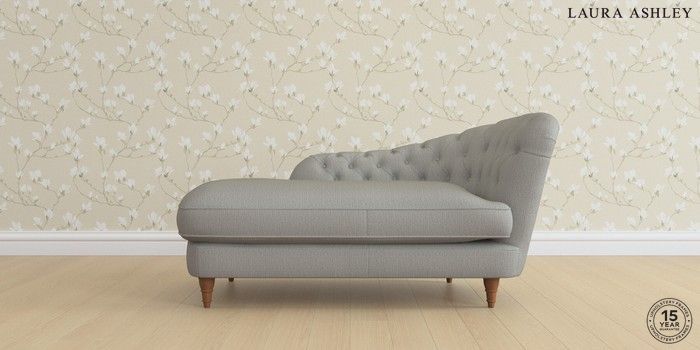 7.0.3 Buy Hathersage by Laura Ashley Chaise Longue Right Hand Edwin Herringbone Pale Steel Grey Low Turned - Teak from the Next UK online shop Click here to use our accessible website