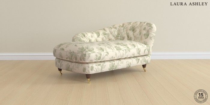 7.0.3 Buy Hathersage by Laura Ashley Chaise Longue Right Hand Gosford Weave Sage Green Low Brass Castor - Chestnut from the Next UK online shop Click here to use our accessible website