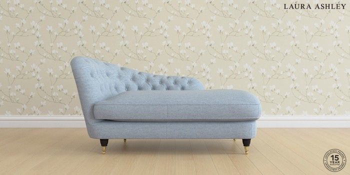 7.0.3 Buy Hathersage by Laura Ashley Chaise Longue Right Hand Harley Seaspray Blue Low Brass Castor - Black from the Next UK online shop Click here to use our accessible website