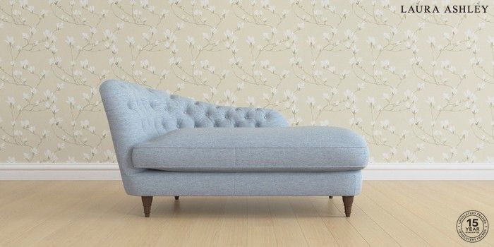 7.0.3 Buy Hathersage by Laura Ashley Chaise Longue Right Hand Harley Seaspray Blue Low Turned - Chestnut from the Next UK online shop Click here to use our accessible website