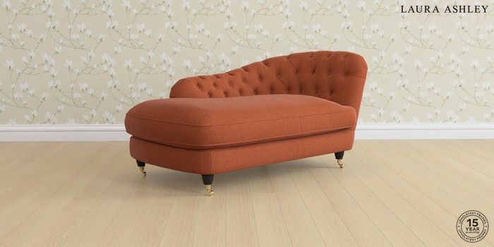 7.0.3 Buy Hathersage by Laura Ashley Chaise Longue Right Hand Harley Terracotta Orange Low Brass Castor - Black from the Next UK online shop Click here to use our accessible website