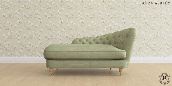 7.0.3 Buy Hathersage by Laura Ashley Chaise Longue Right Hand Kinsham Hedgerow Green Low Brass Castor - Light Oak from the Next UK online shop Click here to use our accessible website