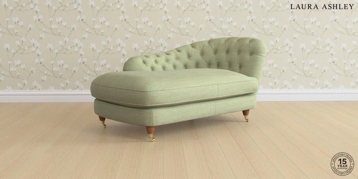 7.0.3 Buy Hathersage by Laura Ashley Chaise Longue Right Hand Kinsham Hedgerow Green Low Brass Castor - Teak from the Next UK online shop Click here to use our accessible website