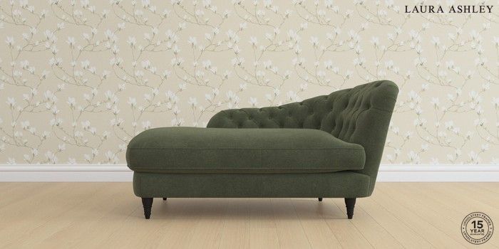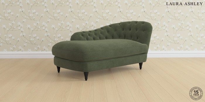 7.0.3 Buy Hathersage by Laura Ashley Chaise Longue Right Hand Lundar Chenille Ivy Green Low Turned - Black from the Next UK online shop Click here to use our accessible website