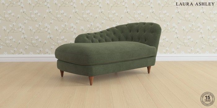 7.0.3 Buy Hathersage by Laura Ashley Chaise Longue Right Hand Lundar Chenille Ivy Green Low Turned - Teak from the Next UK online shop Click here to use our accessible website