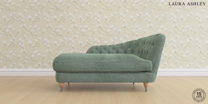 7.0.3 Buy Hathersage by Laura Ashley Chaise Longue Right Hand Nantmor Fern Green Low Brass Castor - Light Oak from the Next UK online shop Click here to use our accessible website