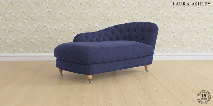 7.0.3 Buy Hathersage by Laura Ashley Chaise Longue Right Hand Nantmor Midnight Navy Low Brass Castor - Light Oak from the Next UK online shop Click here to use our accessible website