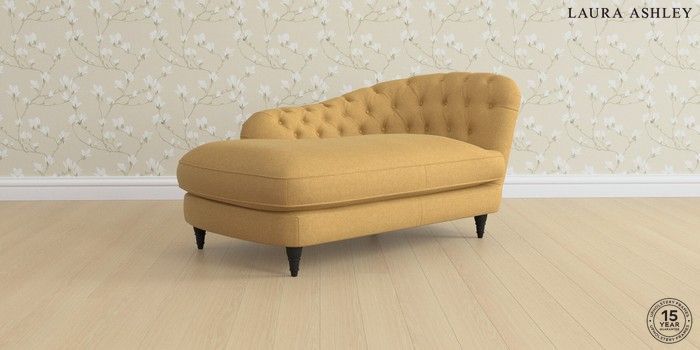 7.0.3 Buy Hathersage by Laura Ashley Chaise Longue Right Hand Peyton Ochre Yellow Low Turned - Black from the Next UK online shop Click here to use our accessible website