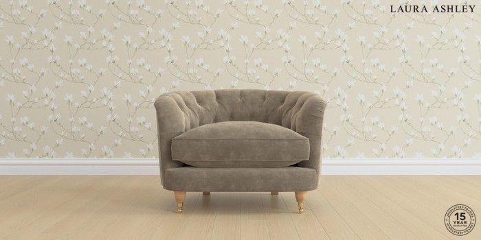 7.0.3 Buy Hathersage by Laura Ashley Snuggle Alwyn Velvet Truffle Natural Low Brass Castor - Light Oak from the Next UK online shop Click here to use our accessible website