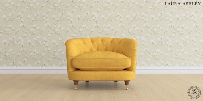 7.0.3 Buy Hathersage by Laura Ashley Snuggle Bainton Ochre Yellow Low Brass Castor - Teak from the Next UK online shop Click here to use our accessible website