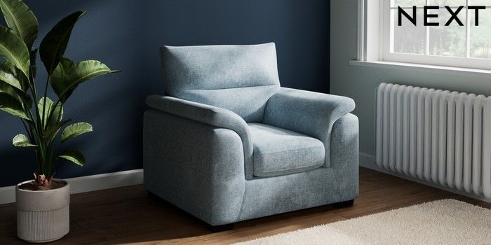 7.3.1 Buy Hayden Highback Armchair Plush Chenille Light Blue Small Slim Block - Dark from the Next UK online shop