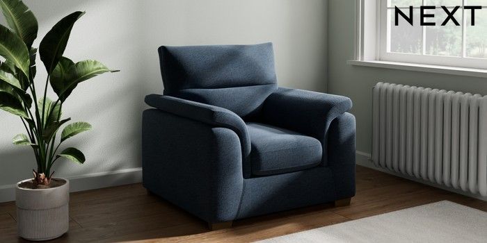 7.3.1 Buy Hayden Highback Armchair Ripple Chenille Dark Blue Small Slim Block - Mid from the Next UK online shop