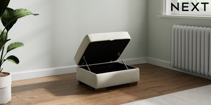 7.0.3 Buy Hayden Highback Storage Footstool Luxe Chenille Oyster Small Slim Block - Mid from the Next UK online shop Click here to use our accessible website