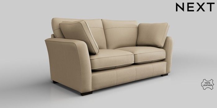 6.12.1 Buy Heath Highback Leather 3 Seater Small Sofa Turin Leather Light Natural Block - Dark from the Next UK online shop Click here to use our accessible website