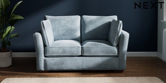 7.2.6 Buy Heath Highback 2 Seater Small Sofa Plush Chenille Light Blue Block - Mid from the Next UK online shop Click here to use our accessible website