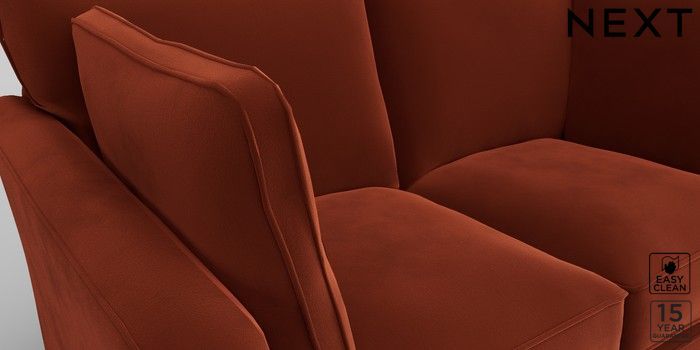 6.11.4 Buy Heath Highback 2 Seater Small Sofa Plush Velvet Easy Clean Ginger Orange Block - Dark from the Next UK online shop Click here to use our accessible website