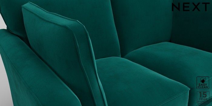 6.10.9 Buy Heath Highback 2 Seater Small Sofa Plush Velvet Easy Clean Juniper Green Block - Dark from the Next UK online shop Click here to use our accessible website
