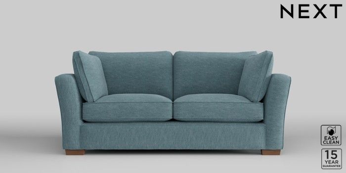 6.11.4 Buy Heath Highback 3 Seater Small Sofa Fine Chenille Easy Clean Mid Blue Block - Mid from the Next UK online shop Click here to use our accessible website