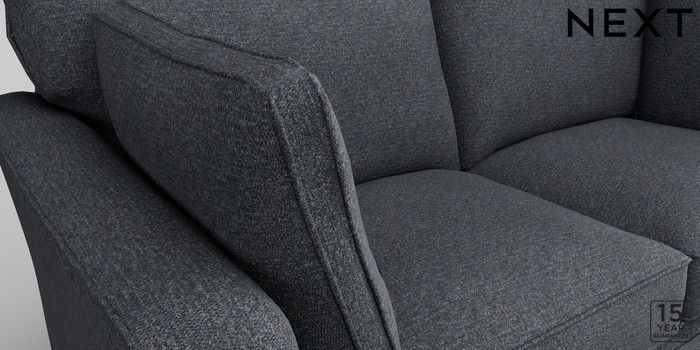 6.11.4 Buy Heath Highback 3 Seater Small Sofa Tweedy Chenille Navy Blue Block - Mid from the Next UK online shop Click here to use our accessible website
