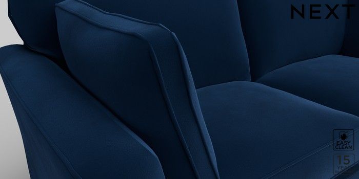 6.12.1 Buy Heath Highback 3 Seater Sofa Plush Velvet Easy Clean Navy Blue Block - Light from the Next UK online shop Click here to use our accessible website