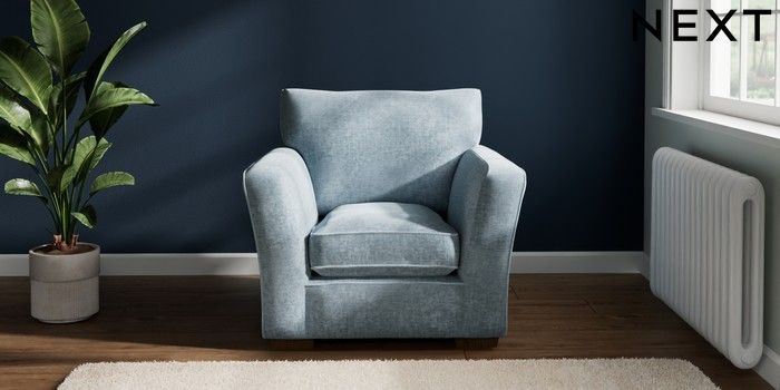 7.2.6 Buy Heath Highback Armchair Plush Chenille Light Blue Block - Mid from the Next UK online shop Click here to use our accessible website